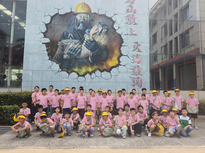 随后,大家前往玉环市消防救援大队,消防叔叔刚摆好攀爬架,胆子大点的孩子绑上安全防护爬上云梯就和消防员比速度;洒水车机器人旋转喷水,水幕映出七色光;消防陈列馆里,小小“英雄”们戴上头盔、扛上水枪,过足了灭火瘾。